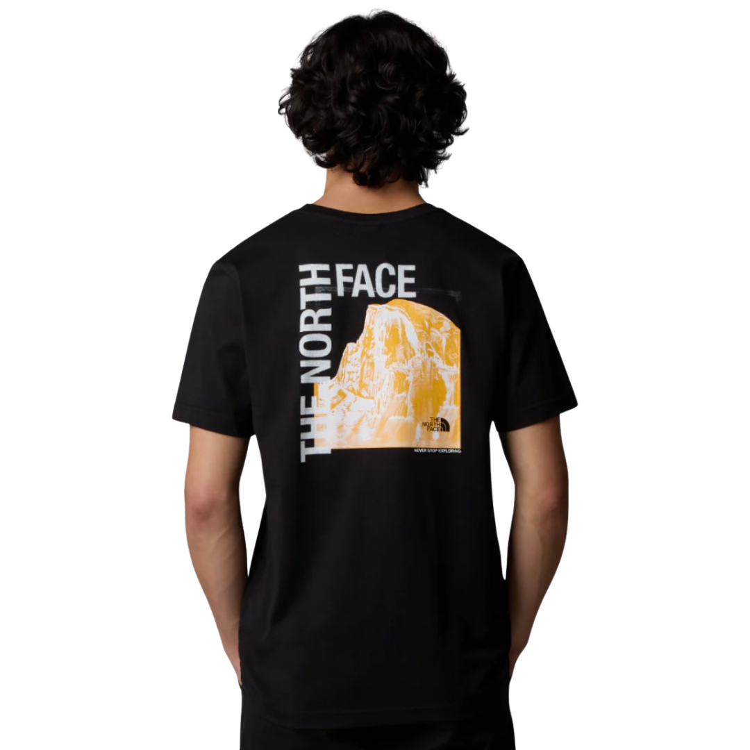Ova muška Half Dome Photo majica brenda The North Face kombinuje jednostavnost i stil, čineći je osnovnim komadom garderobe koji ćete rado nositi iznova i iznova. Izrađena od udobnog 100% pamuka, majica ima klasičan okrugli izrez i na leđima nosi diskretan vodeno-bazirani print prikaza Half Dome, čuvene stene u Nacionalnom parku Yosemite. Idealan izbor za svakodnevno nošenje, kao samostalni komad ili kao sloj ispod jakne tokom hladnijih dana.